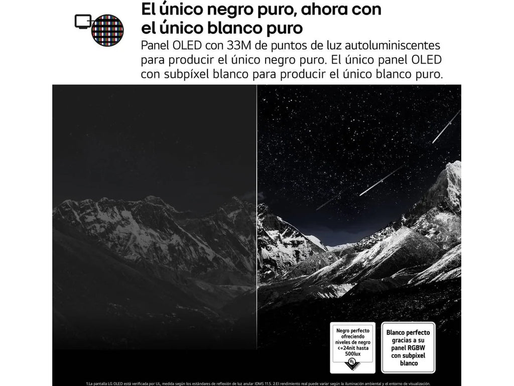 - La verdadera experiencia OLED⁽¹⁾, solo te la dan los creadores del único negro puro, ahora con el único blanco puro porque desarrollamos la tecnología que lleva el disfrute de tus contenidos a un nivel superior: panel LG OLED evo, Smart TV personalizado y